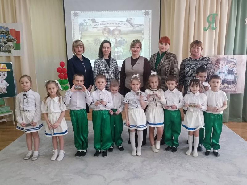 Почетным гостем праздника стала председатель Первомайской районной организации г. Бобруйска РОО «Белая Русь» Юлия Коваленко. Она не только наблюдала за творческими успехами ребят, но и пришла с приятными сюрпризами. В завершение встречи Юлия Анатольевна вручила учреждению образования и детям памятные подарки: красочные книги, развивающие пазлы и тематические магниты.