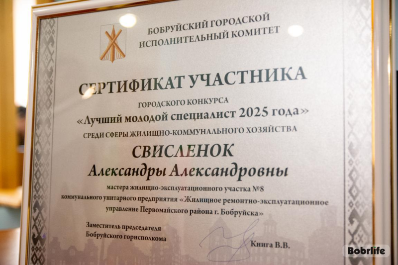 – Приоритет молодежи остается одним из ключевых. Мы создаем все необходимые условия для закрепления молодых специалистов на местах, их творческой и трудовой реализации. Александра стала одним из таких сотрудников. А трудовой опыт и креативных подход к делу привели к награде в конкурсе, – отметила заместитель директора по идеологической работе, кадрам и приемам граждан КУП «ЖРЭУ Первомайского района г. Бобруйска» Светлана Михолап.