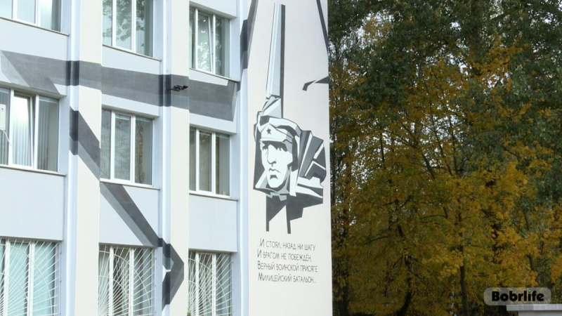 В Бобруйске, как и во всей Беларуси, бережно хранят память о подвиге защитников родной земли. 18 июля 1941 года Константин Григорьевич Владимиров, чье изображение нанесено на фасад, был убит разрывом вражеского снаряда сразу после того, как, будучи раненым в голову и ногу, поднял подчиненных в последнюю контратаку. Именем Константина Григорьевича Владимирова названа одна из улиц Могилева.