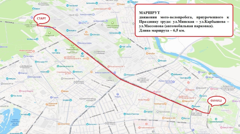 Движение по маршруту: ул. Минская – ул. Карбышева – ул. Массонова. Длина дистанции – 6,5 км.