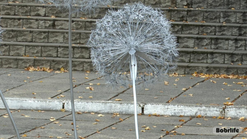 — Эти одуванчики были установлены в рамках конкурсного проекта, посвященного Году благоустройства, и выполнены из вязальной проволоки разного диаметра, — делится Татьяна Жарова, мастер производственного обучения УО «Бобруйский государственный механико‑технологический колледж».