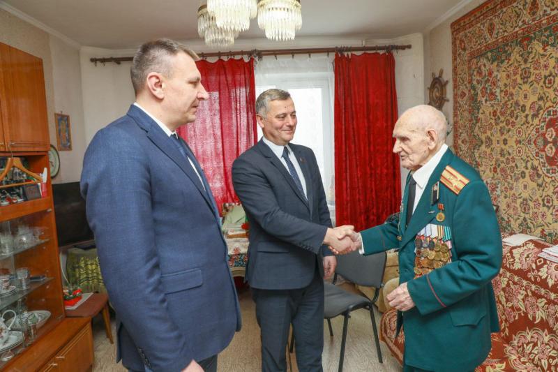 Глава администрации Первомайского района города Бобруйска Виталий Власевич вместе с генеральным директором ОАО "УКХ" Бобруйскагромаш" Олегом Корсаком лично поздравили ветерана Великой Отечественной войны Бориса Николаевича Музалевского с праздником.
