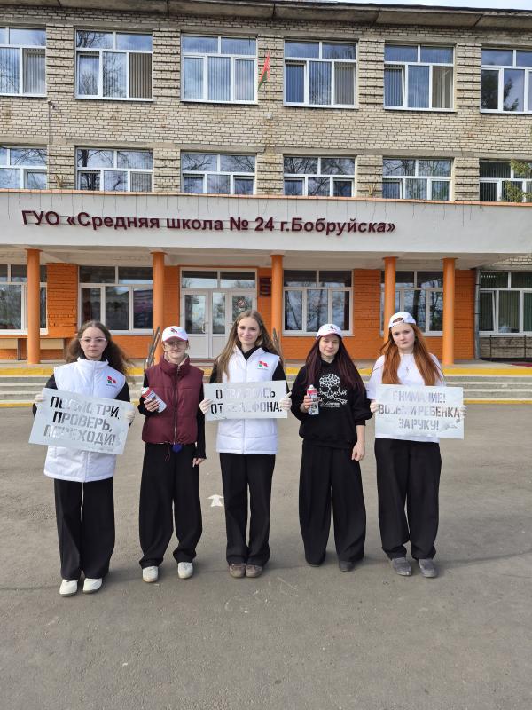 Сегодня учащиеся 9А класса ГУО «Средняя школа №24 г. Бобруйска» стали участниками важной профилактической акции «Возьми ребенка за руку!», инициированной Первомайской районной организацией г. Бобруйска РОО «Белая Русь».