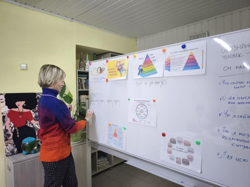 В ходе упражнения-приветствия, предложенного психологом, каждый участник рассказал о своей исключительности, а с помощью теста и диагностики по Пирамиде Маслоу определил уровень самооценки. Завершился тренинг практикой, в том числе с использованием Мак-карт, направленной на осознанность для укрепления жизнестойкости и внутренней опоры, определение внутренних и внешних ресурсов