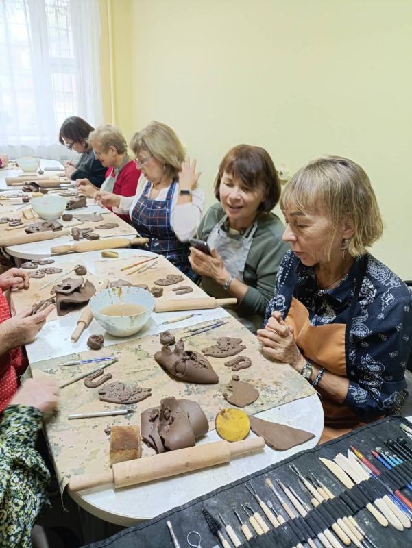 В рамках мероприятий, приуроченных Неделе родительской любви, на базе отделения дневного пребывания для граждан пожилого возраста ТЦСОН Первомайского района г. Бобруйска состоялся мастер-класс по лепке из глины. Урок мастерства бобруйчанам старшего возраста преподали Татьяна Анатольевна Кашлач, мастер производственного обучения Бобруйского государственного колледжа им. А.Е.Ларина, и две ее очаровательные ученицы. Из приготовленной заранее глины при помощи рук, воды и специальных инструментов (скальпель, шило, кисточка) участники мастер-класса изготовили подкову и очаровательную лошадь - символ 2026 года. Несмотря на использование шаблонов, работы у всех получились разные. В каждой чувствовалась душа и фантазия автора. В процессе творчества Татьяна Анатольевна познакомила с основными этапами изготовления изделий из глины, ответила на интересующие вопросы. Лепка из глины оказалось не только интереснейшим творческим занятием, но и отличным методом релаксации. В завершении всех ожидало общее фотографирование с изделиями. После обжига чудные маленькие лошадки и подковы вернутся к своим хозяевам, а значит, быть следующему мастер-классу по росписи керамики!